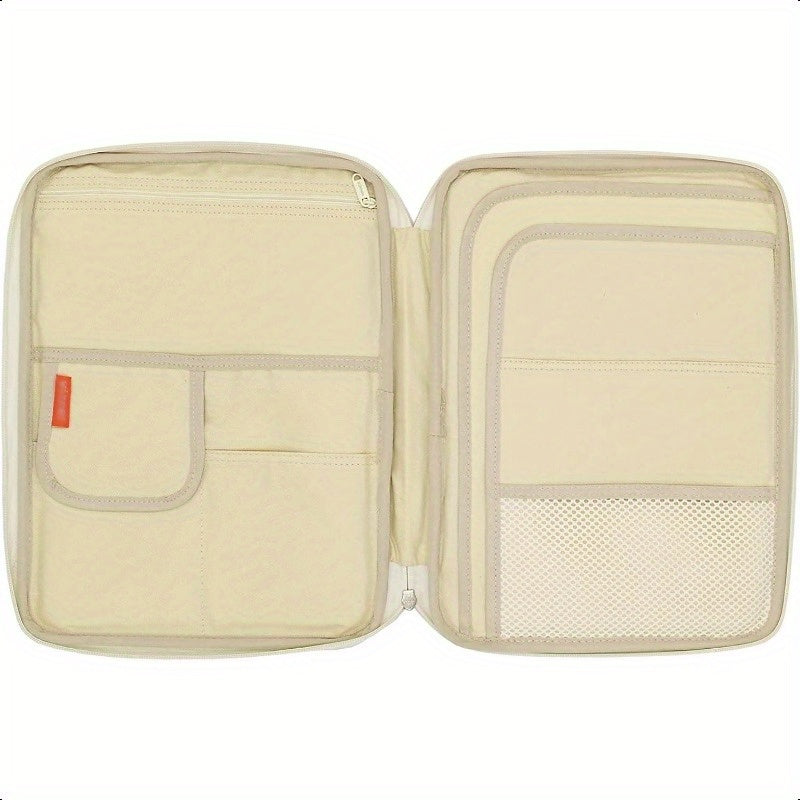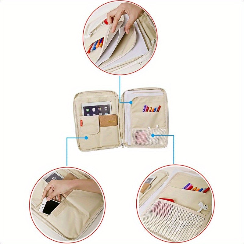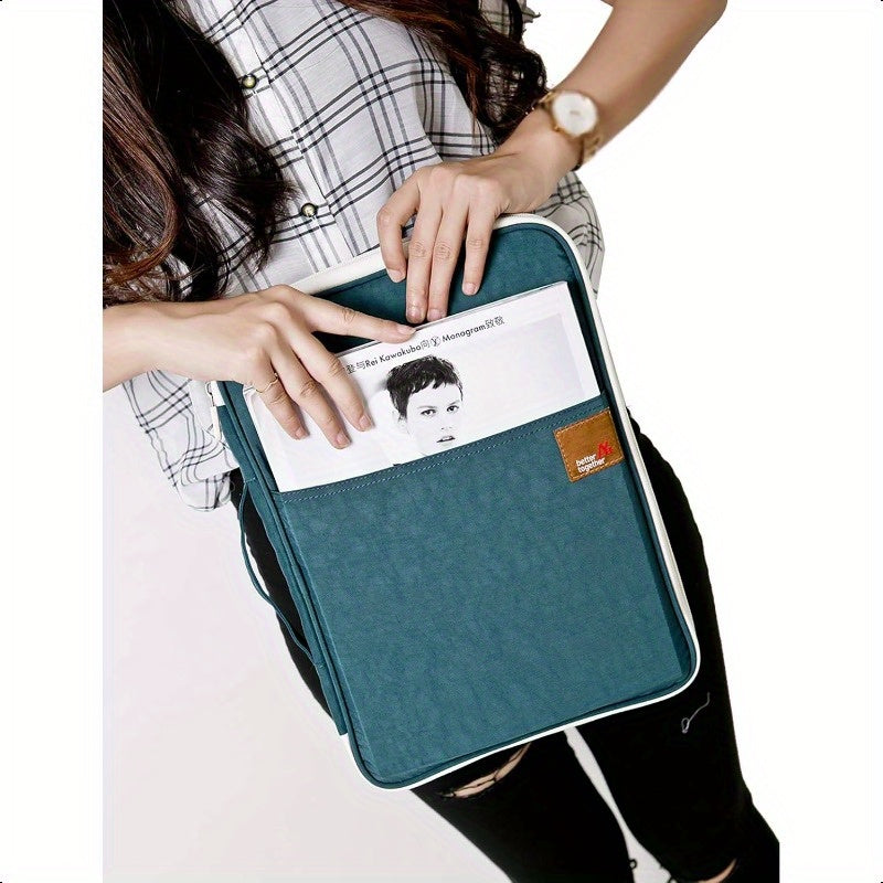Key Features: Dark Blue Travel Document Organizer A4 Zipper Portfolio with Multiple Compartments Durable Fabric & Ergonomic Handle for Business Travel Office School Compact Portable File Holder School Supply Storage Smooth Texture Finish. It comes with RFID - blocking and waterproof features, multiple compartments, and a durable zipper closure.